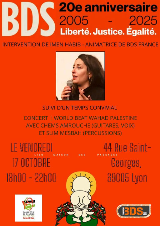 4 novembre 2025, 20h : soirée d’échanges sur les projets de Couleurs Palestine 69 - salle de la Caponnière, St Genis Laval